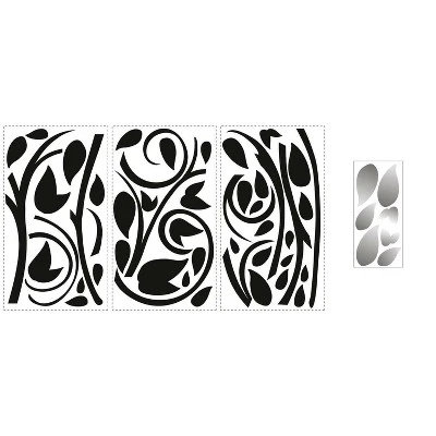 This eyecatching piece of decor is an easy way to add style and flair to any wall or flat surface. Each set includes twining black branches and leaves, as well as some special silver foil leaves that will add a unique shine to the wall. Assemble the design as you please, removing and repositioning each branch and leaf, until you’ve created your own custom work of art. Looks great in a variety of rooms, including dorms, dining areas, bedrooms, and more.