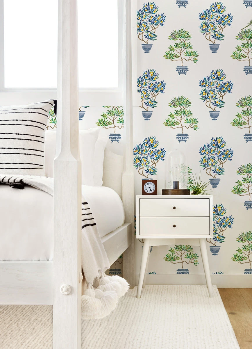 Beautiful bonsai trees painted in watercolors create a whimsically wonderful print for any space! Subtle chinoiserie style merges with modern painterly design in this renter-friendly peel and stick wallpaper. Designed by Cat Coquillette, this print is as easy to install as Peel, Stick, Done!™