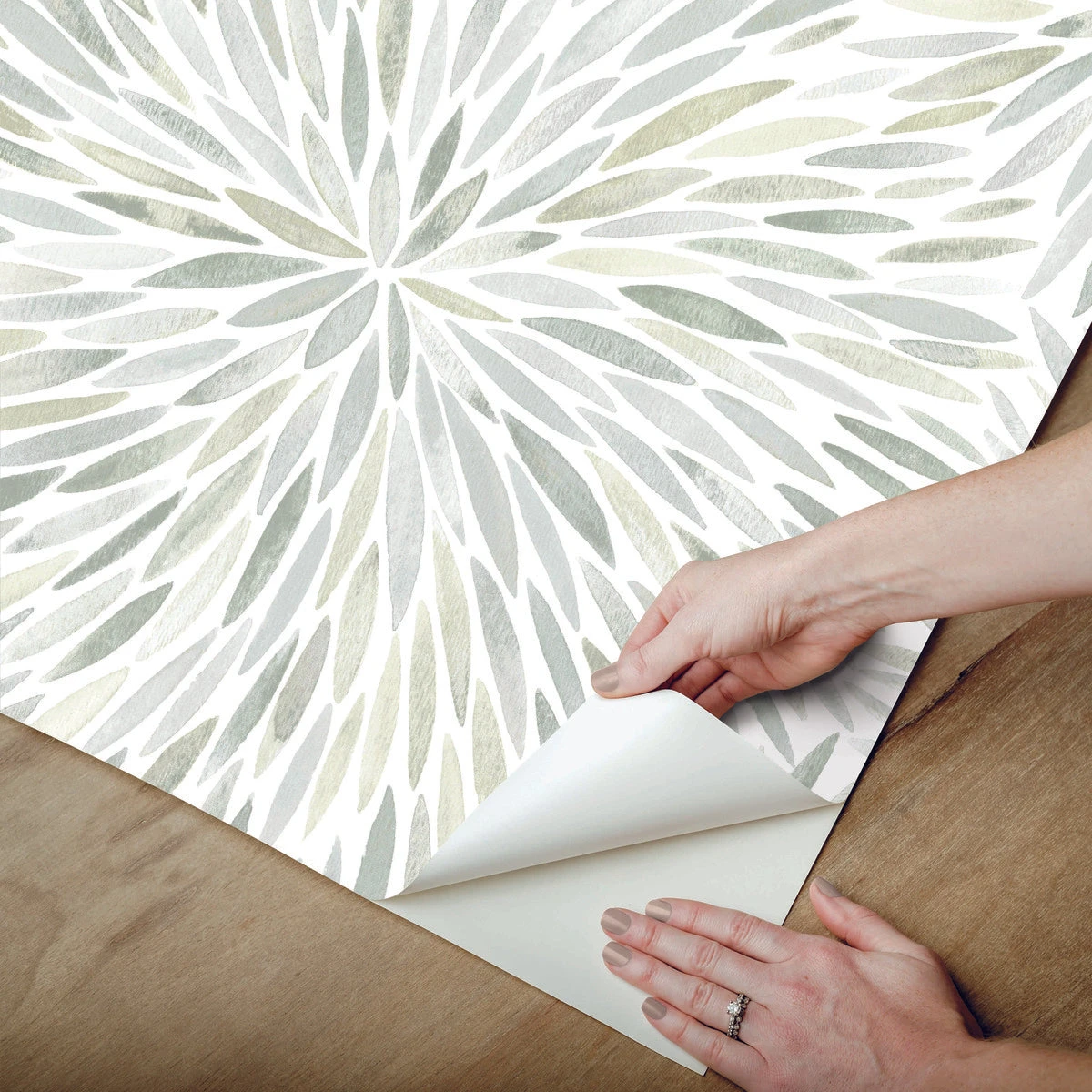 Muted grey tones in painterly watercolor brushstrokes create a sunburst effect in this peel and stick wallpaper print! Similar to the petal arrangements of a dahlia, this pattern will give any space a hint of botanical whimsy. Designed by Cat Coquillette, this print is as simple to install as Peel, Stick, Done!â„¢