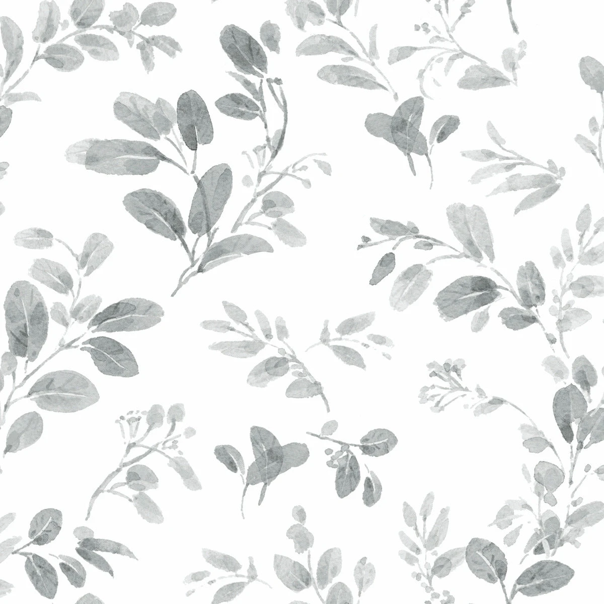 Gently vining leaves meander in graceful form and soft watercolor rendering in this Dancing Leaves peel and stick wallpaper from RoomMates. Nurturing any room in your home with the beauty and tranquility of nature has never been easier with this soft gray based color for the leaves and clean white background that coordinates with both white or silver/nickel home accents or furniture.