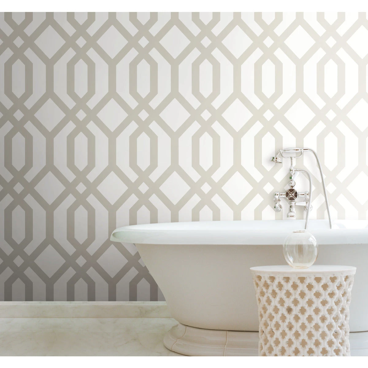 Trellis designs evoke beautiful garden spaces and create a sense of bringing the outdoors in, making the Gazebo Lattice peel and stick wallpaper design from RoomMates a lovely interior wall choice for those who enjoy being in the garden. Formal, yet never stuffy, the lattice design in soft linen beige on white is an ideal design for any room in the house and may be used successfully with rattan, jute, or warm wood decor of all kinds, creating a fresh feel to the rooms it enhances.