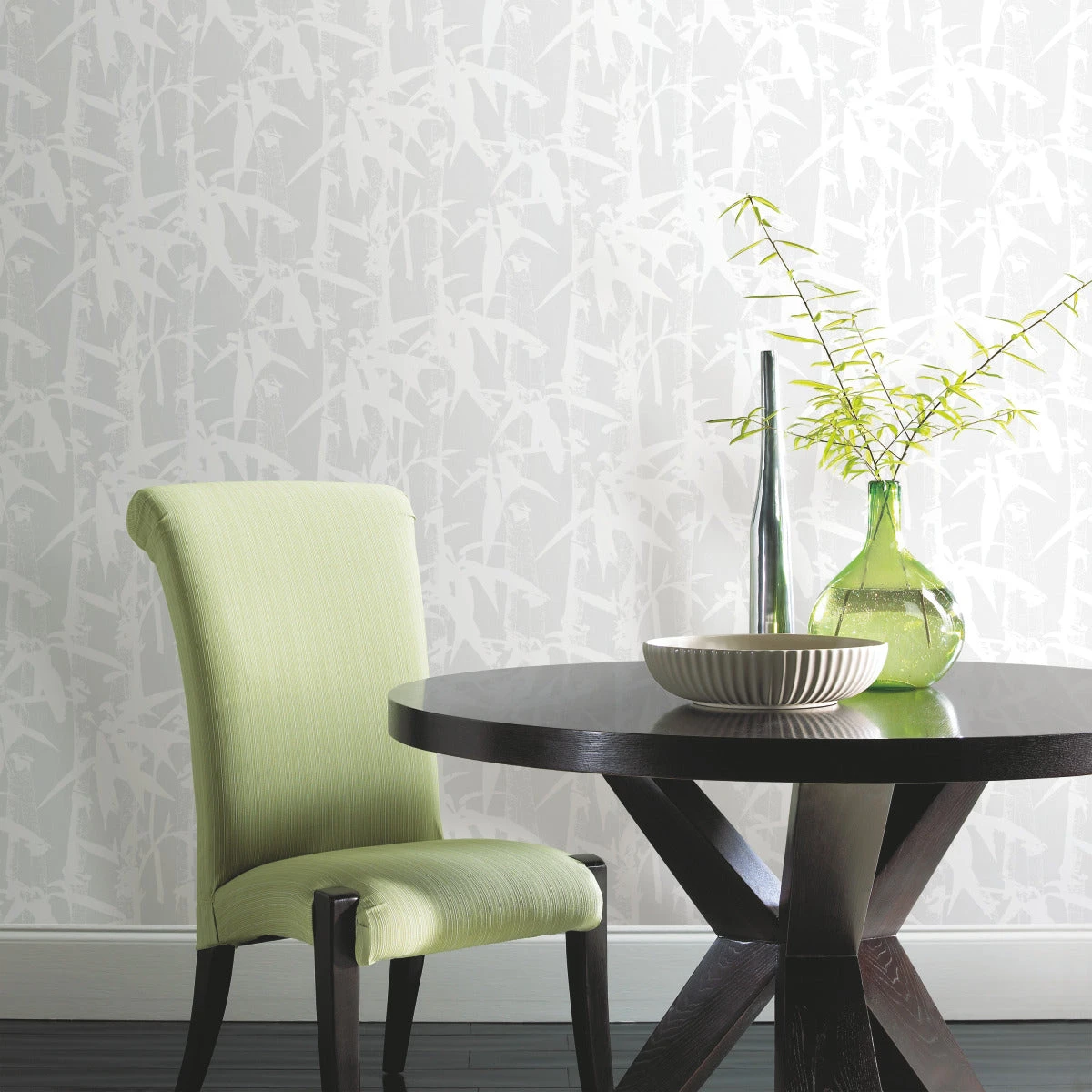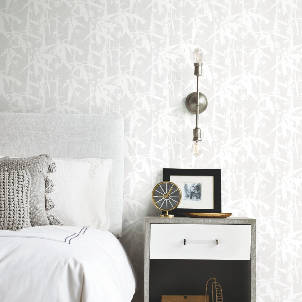 In classic Asian style the bamboo plant portrays lasting values needed for life as it can bend but never breaks. Incorporate this wisdom in your home with Modern Bamboo peel and stick wallpaper from RoomMates. The softly striking silhouette motif is restful and enduring in palest gray with white for easy coordination in any room. Peel and stick wallpapers are an easy and affordable way to decorate; simply peel off the paper backing and smooth onto the wall. When it’s time to redecorate, remove in full strips with no remaining sticky residue or damage to walls.