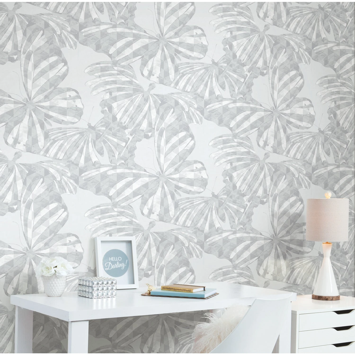 The Mr. Kate Butterfly Peel and Stick Wallpaper will give your space a subtly playful backdrop! The Mr. Kate Butterfly Peel and Stick Wallpaper varies shades of soft grey and white within the abstracted butterfly tessellation pattern. You can use the wallpaper to create a fun yet still neutral room or a stand-out accent wall. Want to put your new wallpaper somewhere else? Easy! This pattern is printed on a reusable adhesive that leaves no damage or residue behind and can be applied to another area without a problem! Renter-friendly and easy to change up whenever new inspiration strikes!