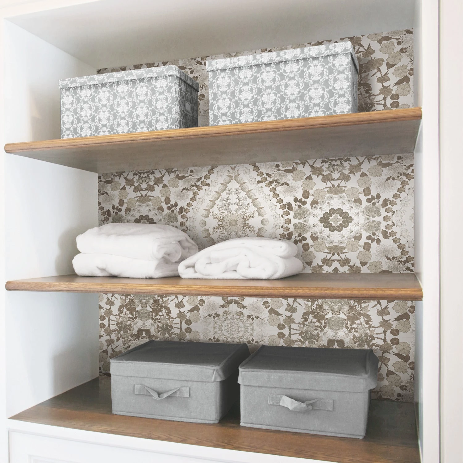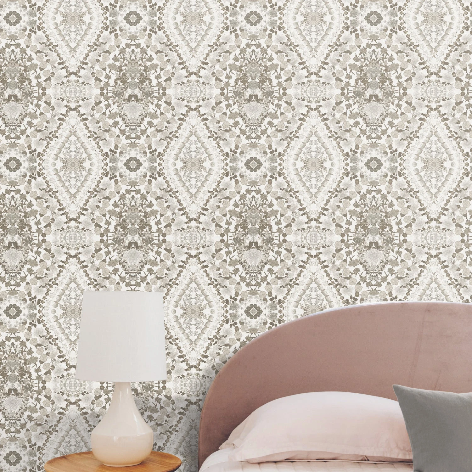 The beautiful Mr. Kate Dried Flower Kaleidoscope Peel and Stick Wallpaper is the mesmerizing removable wallpaper you won’t be able to live without. The realistic dried florals create unique symmetric patterns on your walls, which add interest and texture to your space, and the muted neutral hues provide balance. Want to put your new wallpaper somewhere else? Easy! This pattern is printed on a reusable adhesive that leaves no damage or residue behind and can be applied to another area without a problem!