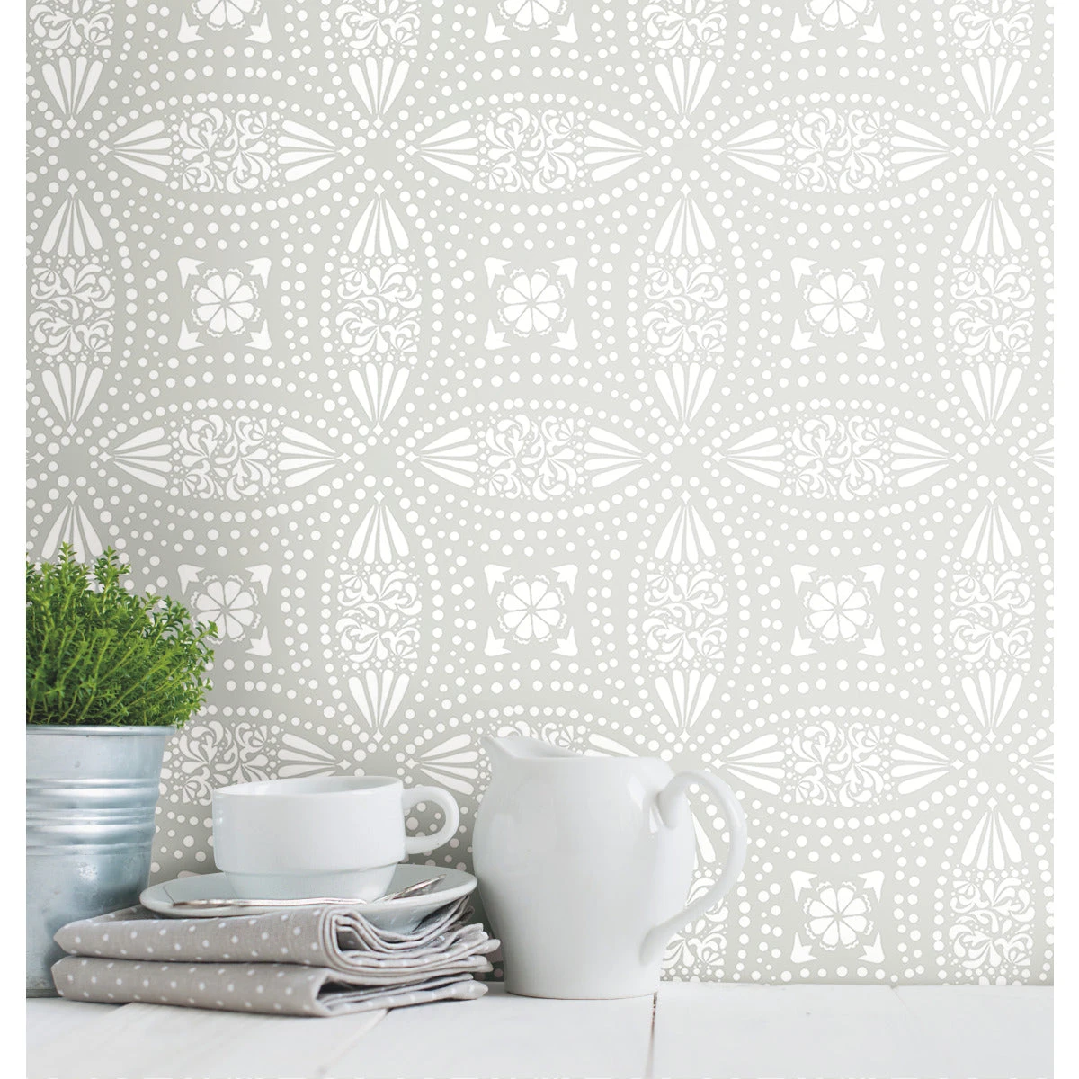Give your home a sophisticated bohemian look with this Overlapping Medallions Peel and Stick Wallpaper from RoomMates. Add serene contrast to your walls with a stylish blend of medallions in a warm off-white palette complimented by soft grey undertones.