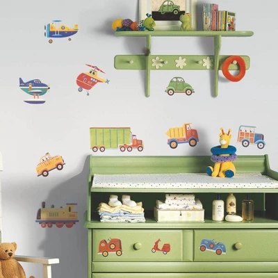 Delight your little boy with the fun shapes of machinery using these transportation applique s. The vinyl planes, trains, automobiles and more stick to vertical surfaces. This set includes 26 images, so you can decorate furnishings as well as the walls for a themed room.The decals can be removed, re-positioned and applied again. There is no sticky residue – just peel and stick.