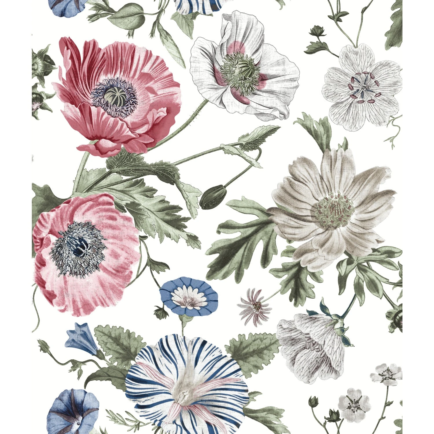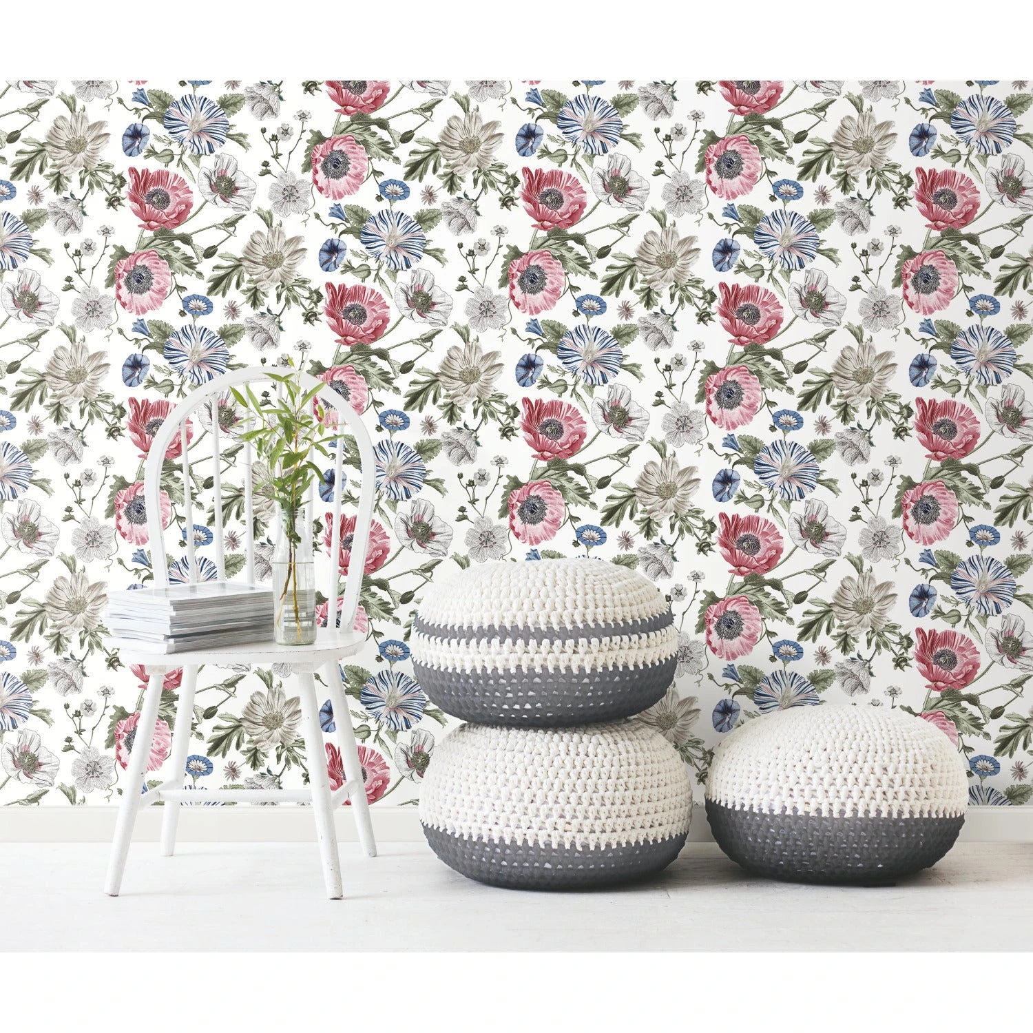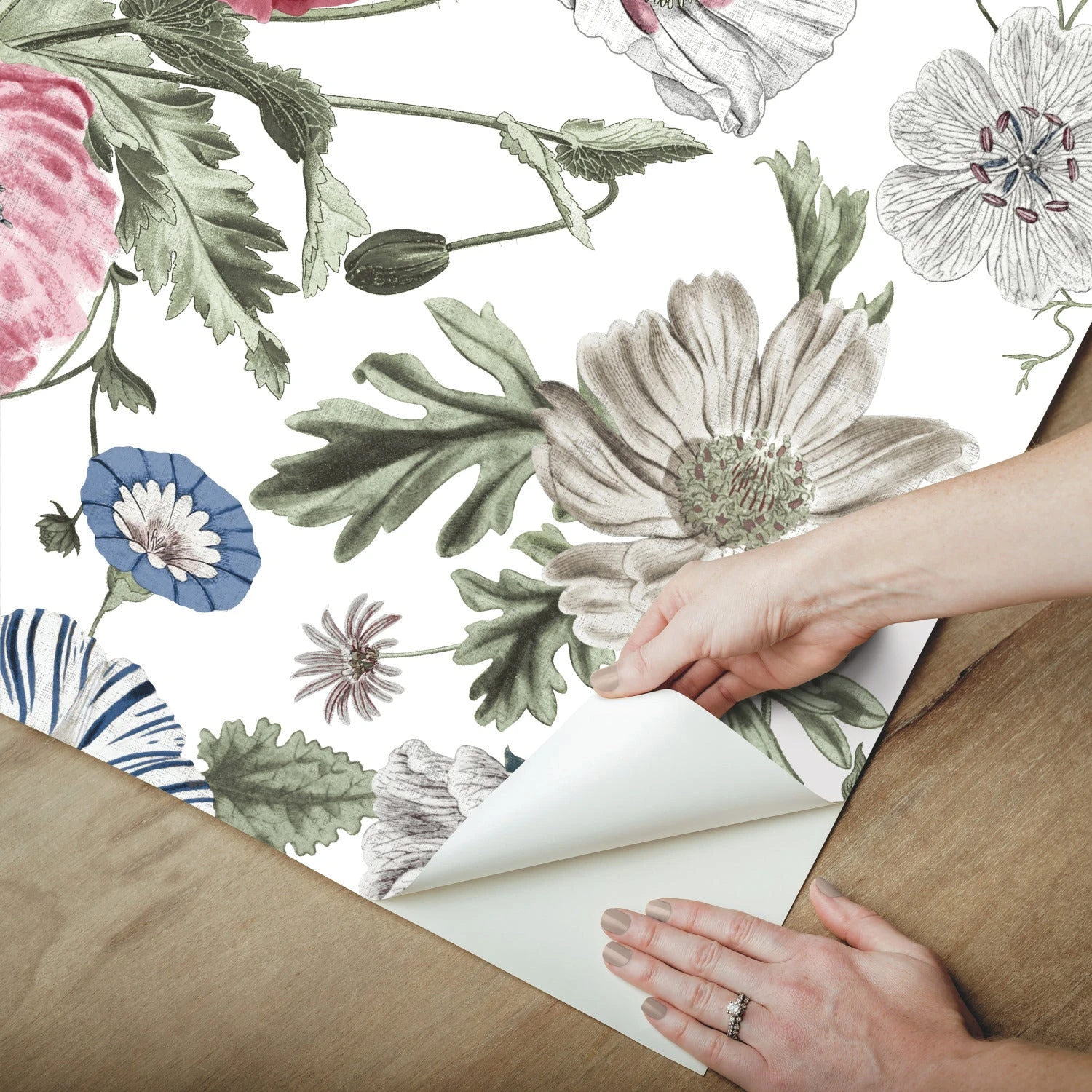 Like the sway of a field of poppies, this gorgeous peel and stick wallpaper is easy to love! Soft, vintage florals trail. Upgrade any cottage-inspired space with this wallpaper in as little as peel, stick & done!