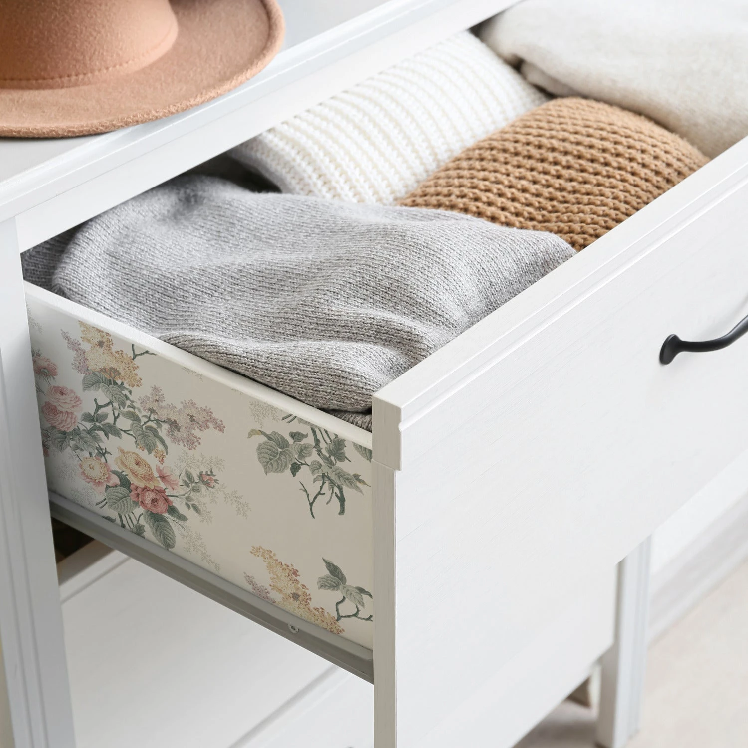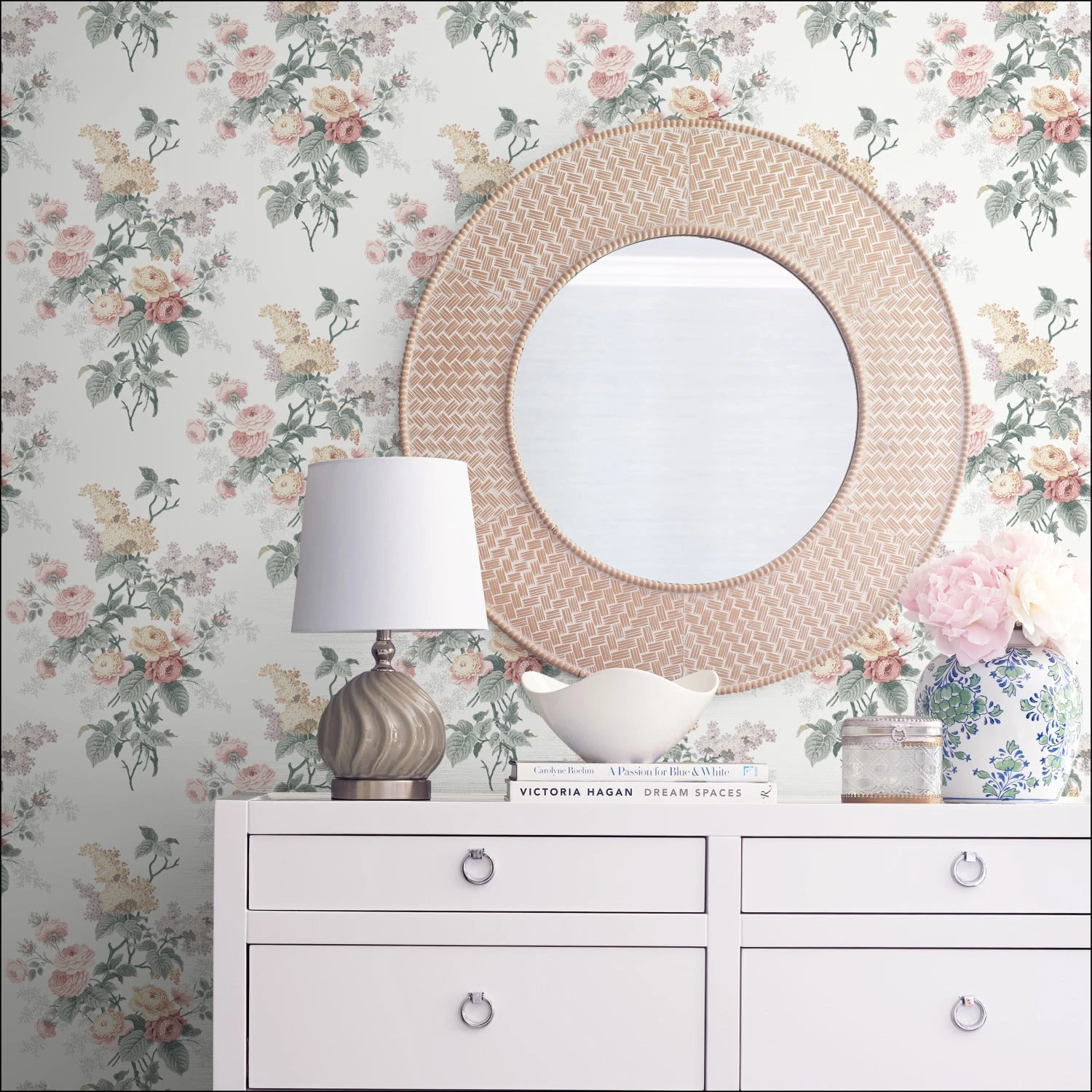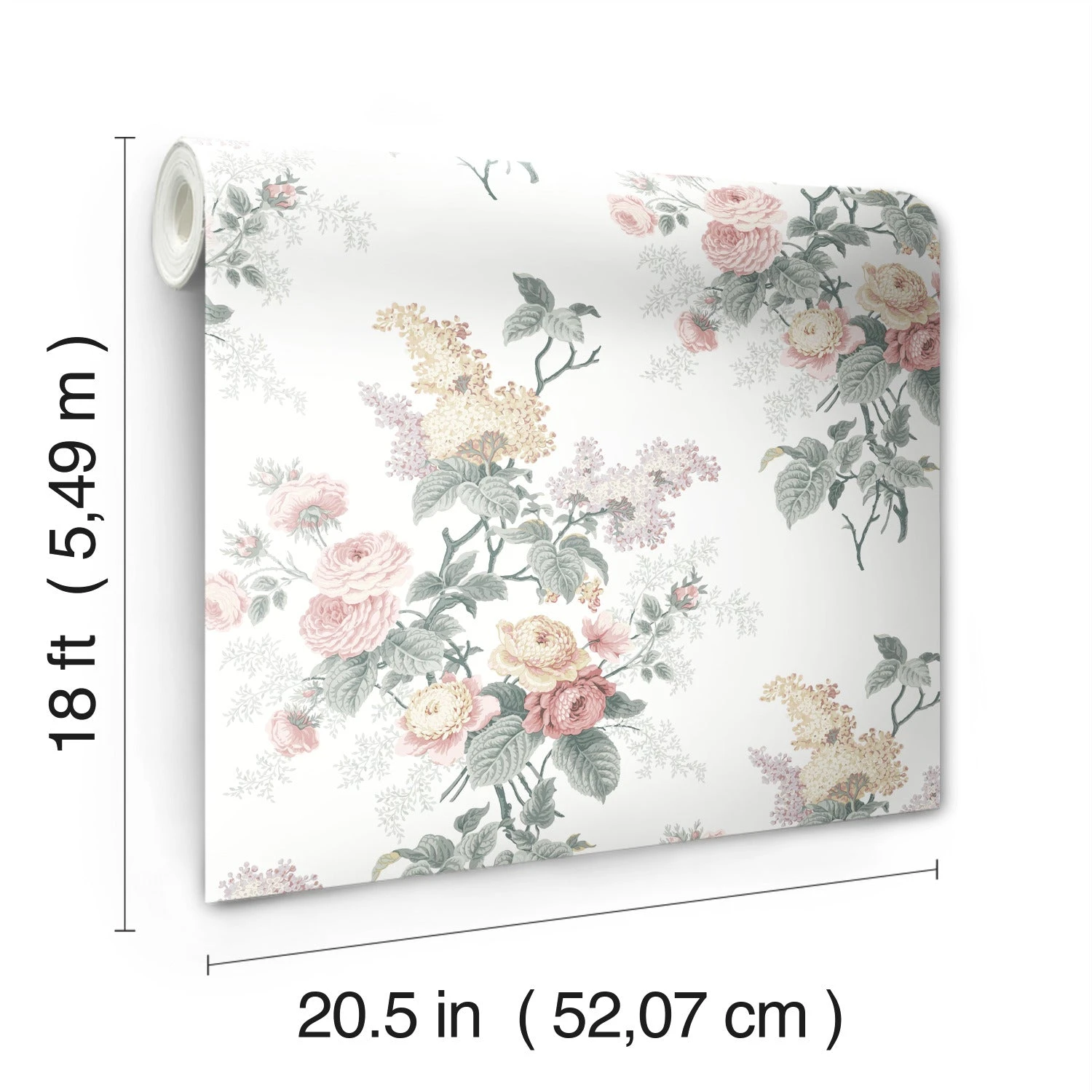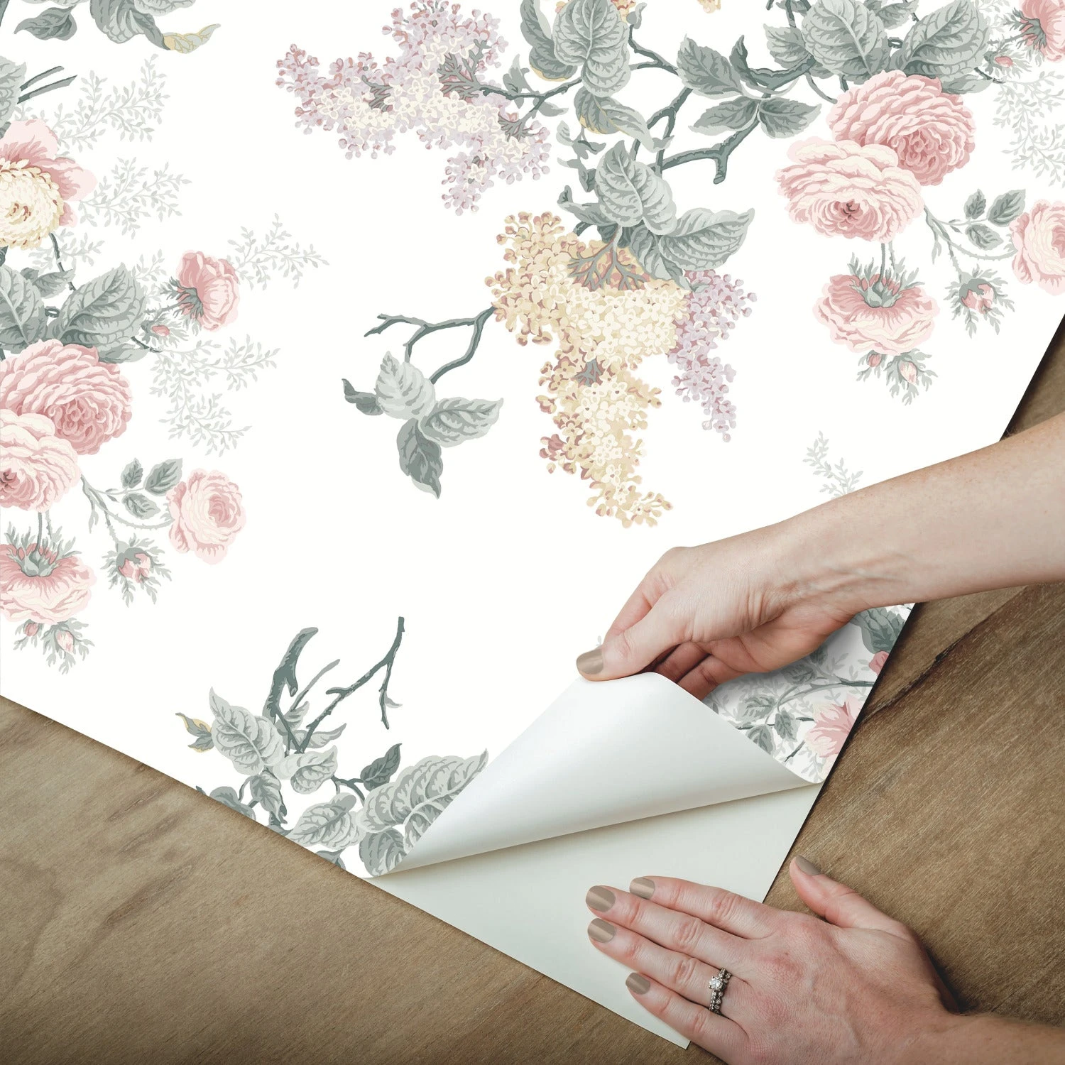 Delight in the breeze of traditionally elegant florals with this charming peel and stick wallpaper print by Waverly. Luscious garden roses and lilacs are displayed in a damask-like pattern. This versatile print is perfect for any bedroom or living space, and installation is as simple as peel, stick, done!