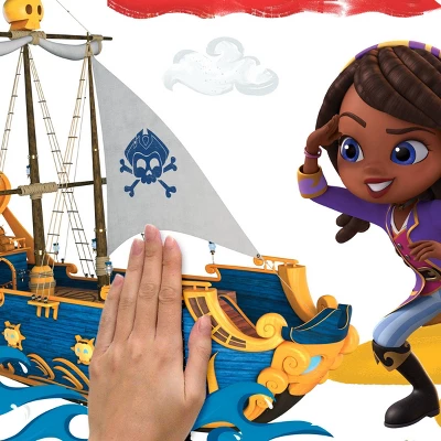 Ahoy! It s Santiago and his crew from the hit Nick Jr. show, Santiago of the Seas! Sail off on an adventure with your favorite pirates! Create the perfect space for any adventurer with these super easy to install, officially licensed Nickelodeon peel and stick wall decals. As easy as PEEL, STICK, DONE! This set of decals features Santiago, Lorelai, and Toma s, their pirate ship, and a pyramid backdrop. One of the most exciting characteristics of this set is its ability to be customized, since it comes with an alphabet set to spell out your adventurer s name!