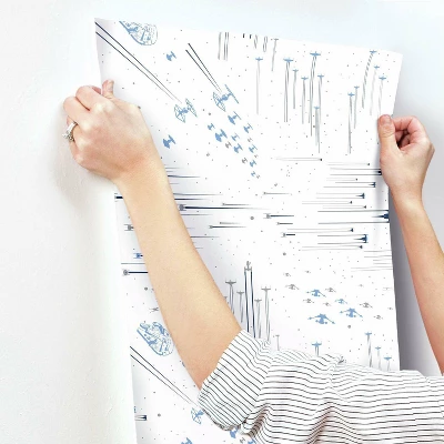 Set off into battle with the Star Wars: Galactic Battles Peel and Stick Wallpaper by RoomMates. Offering a fresh new alternative to decorating with very little commitment, use peel and stick wallpaper for more than just walls. Great for upgrading walls, furniture, DIY Crafts, de cor and more, the decorating possibilities are endless. A fast, fun and affordable decorating tool, install peel and stick wallpaper in minutes. Just peel and stick! plus, remove in full strips in just seconds keeping walls 100% safe. Reusable and extremely versatile.
